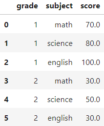 'score': [70, 80, 100, np.nan, 50, np.nan]}