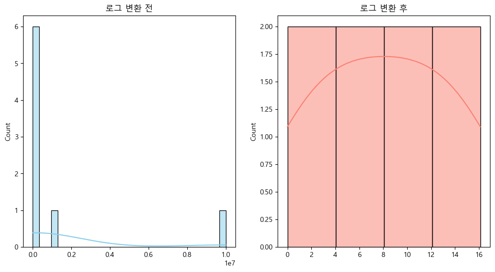 로그 변환 전, 후 비교