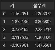 scaler_data = pd.DataFrame(scaler_data, columns=[['키', '몸무게']])