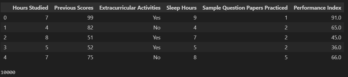X_test = data.drop(['Extracurricular Activities', 'Performance Index'], axis=1)