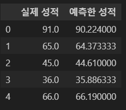 - 데이터 프레임으로 실제값과 예측값 비교하기