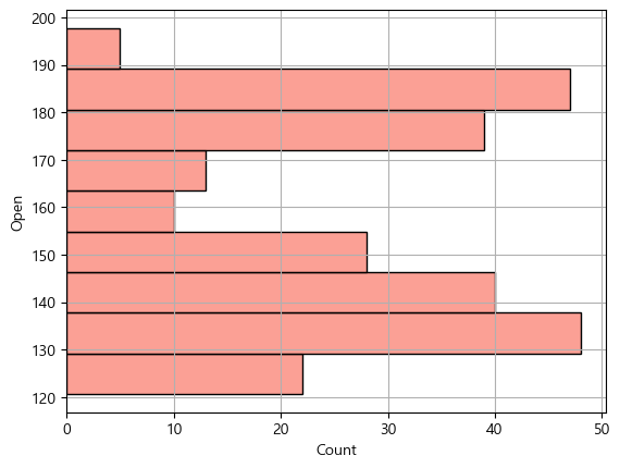 - 'Open'열의 구간에 따른 빈도