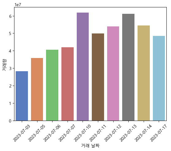 - 각 날짜의 거래량을 시각화