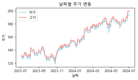 ax1.set_title('날짜별 주가 변동')
