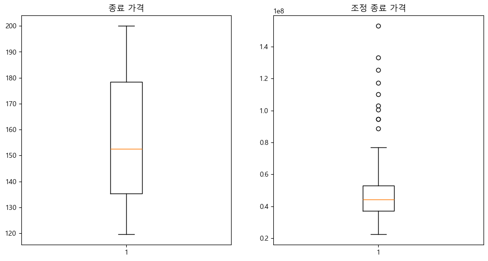 ax1.set_title('종료 가격')