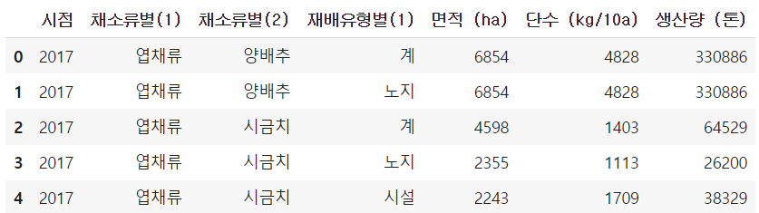 data = pd.read_csv('/content/drive/MyDrive/Colab Notebooks/data/채소류_생산실적.csv')