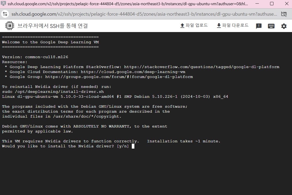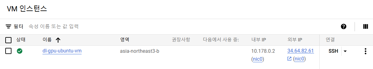 - 위에서 생성한 VM 인스턴스에서 SSH 클릭하여 접속