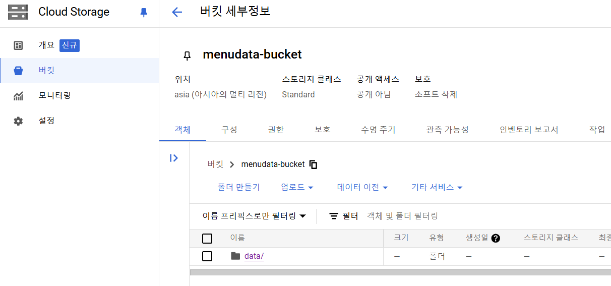 - Cloud Storage → 버킷 → 버킷 Create